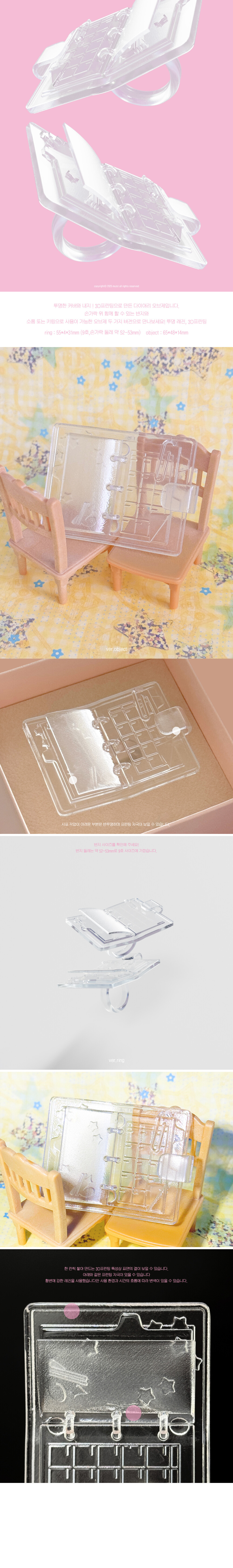 투명한 커버와 종이 3D프린팅으로 만든 다이어리 오브제입니다. 손가락 위 함께 할 수 있는 반지와 소품 또는 키링으로 사용이 가능한 오브제 두 가지 버전으로 만나보세요!