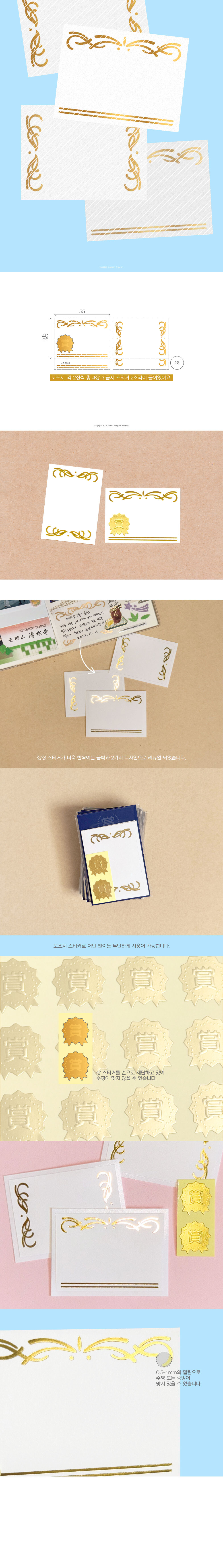 모조지 스티커로 어떤 펜이든 무난하게 사용이 가능합니다. 반짝반짝 빛나는 금박 후가공이 매력적인 스티커 입니다.(각 2장씩 총 4장/금지 스티커 2조각)