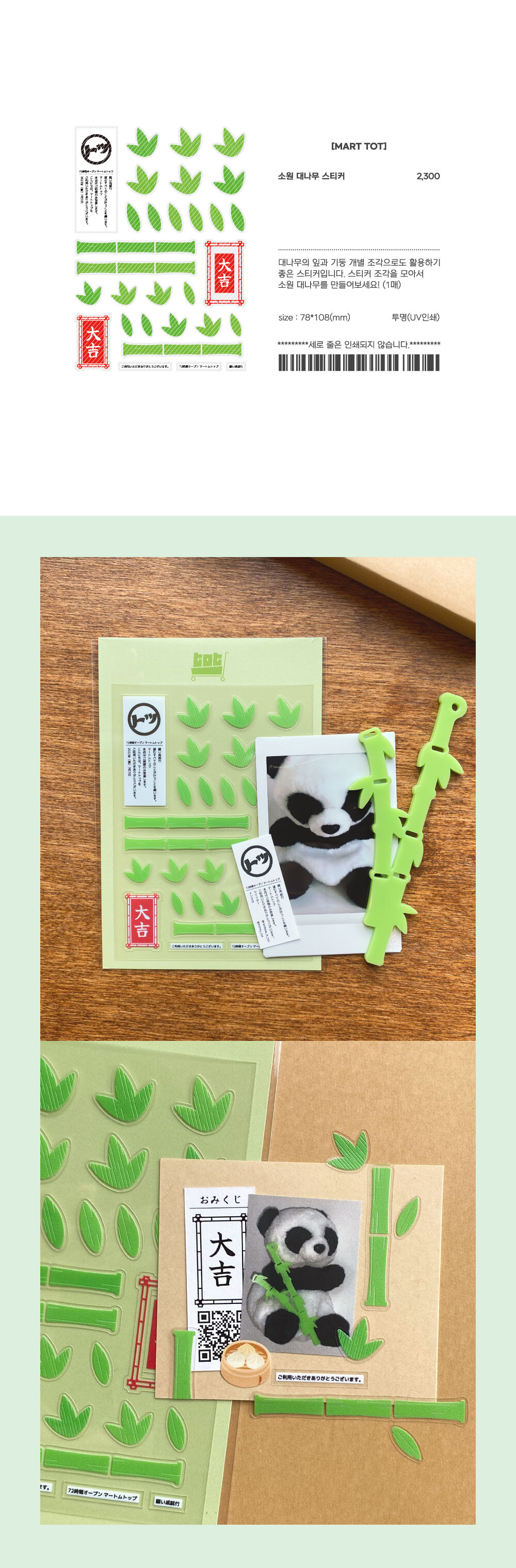 대나무 잎과 기둥 개별 조각으로도 활용하기 좋은 스티커 입니다. 대나무 스티커 조각을 모아서 소원 대나무를 만들어보세요! (1매)