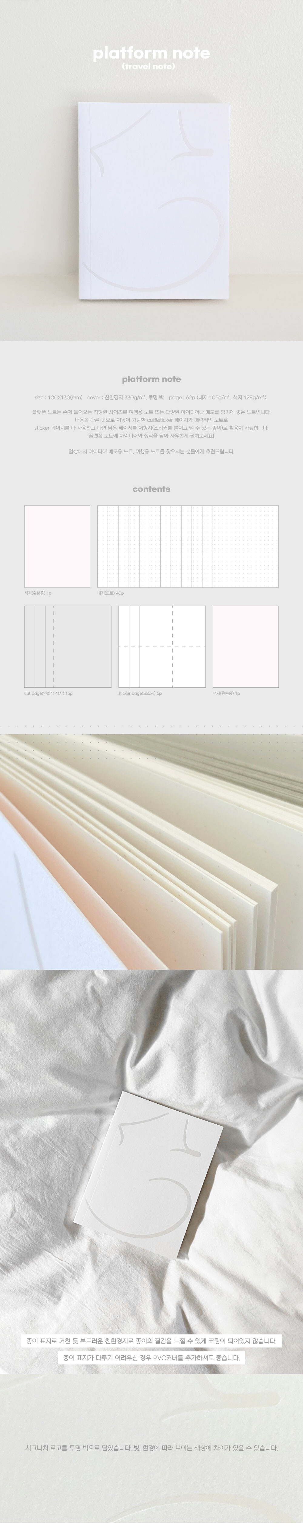 플랫폼 노트는 손에 들어오는 적당한 사이즈로 여행용 노트 또는 다양한 아이디어나 메모를 담기에 좋은 노트입니다. 내용을 다른 곳으로 이동이 가능한 cut&sticker 페이지가 매력적인 노트입니다.