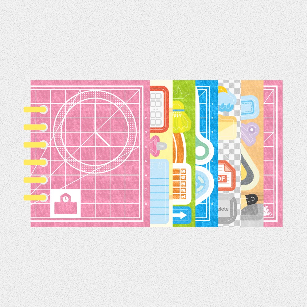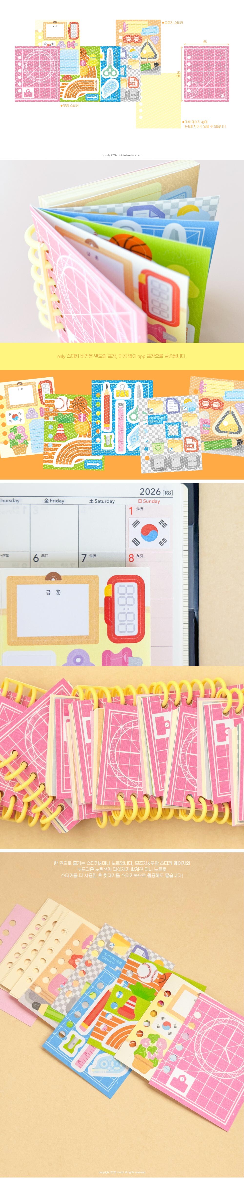 한 권으로 즐기는 스티커&미니 노트입니다. 모조지&무광 스티커 페이지와 부드러운 노란색지 페이지가 합쳐진 미니 노트로 스티커를 다 사용한 후 뒷대지를 스티커북으로 활용해도 좋습니다!